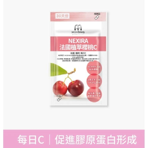 🍒嚴選NEXIRA 法國西印度櫻桃維生素C,100%植物萃取,540mg足量添加,法國百年大廠純淨水萃技術,保留最原本的植萃櫻桃營養。