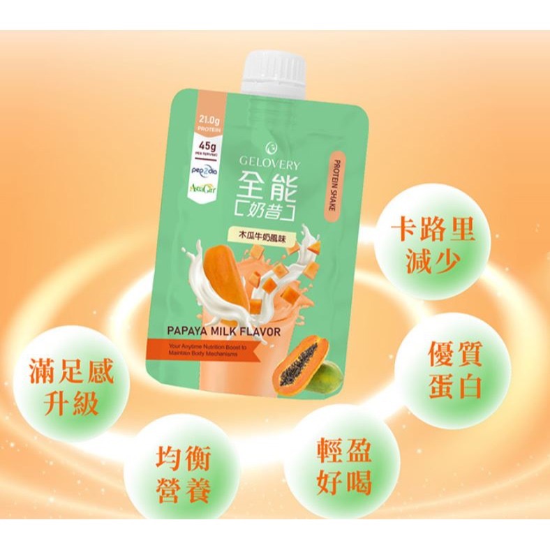 【全能奶昔】 1.一天2~3包,低水位150cc 高水位200cc。 2.沖泡建議常溫水即可 3.不會難攪散,產品也會標示食用前請充分搖勻 4.孕哺期屬特殊時期若有疑慮建議諮詢專業療人員 奶昔 我裡面有顆粒, 而且是可站立的袋子跟韓國一樣 不是台灣一般 只能躺著跟沒有顆粒的便宜貨!! 每45g含20g的蛋白質~ 並添加貴貴的GLP-1專利成份 Pep2Dia專利二胜肽 有效期限兩年