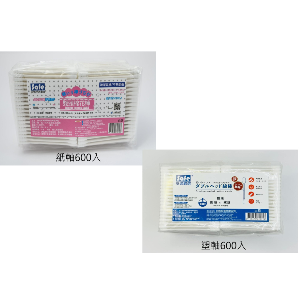 【安適嚴選】-附雙頭棉花棒 塑軸/紙軸 經濟包 600支