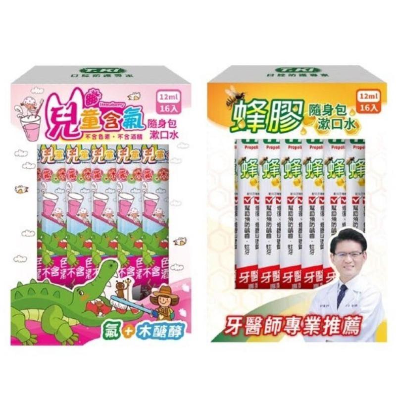 【T.K.I】鐵齒蜂膠 / 兒童漱口水(草莓 ) 隨身包 12ml*16入