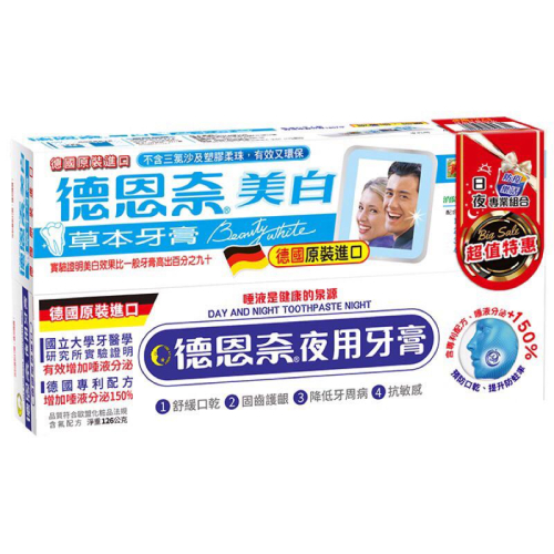 【德恩奈】夜用牙膏126g+美白牙膏126g