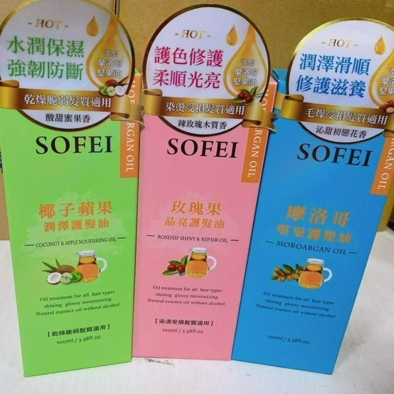 【SOFEI 舒妃】-摩洛哥堅果/椰子蘋果/玫瑰果 護髮油 100ML ✔產 地:台灣 ✔保存方式:請置於陰涼處,避免陽光直射 ✔製造批號或保存日期:標示於外盒 (拆封後,請盡速使用完畢,以確保產品品質。) ✔內容量:100ml  #舒妃 #護髮油 #摩洛哥堅果 #椰子蘋果 #玫瑰 #免沖式護髮
