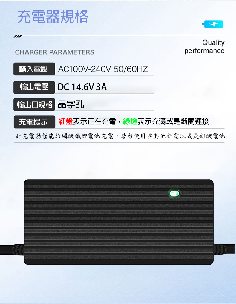 • 12V/15Ah + 品口3A快充充電器 12V/15Ah + 品口3A快充充電器