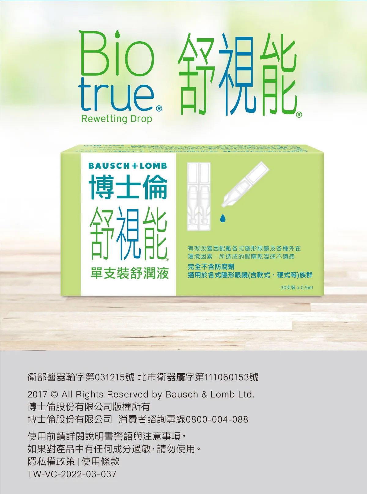 醫療許可證所載品名:博士倫舒視能舒潤液