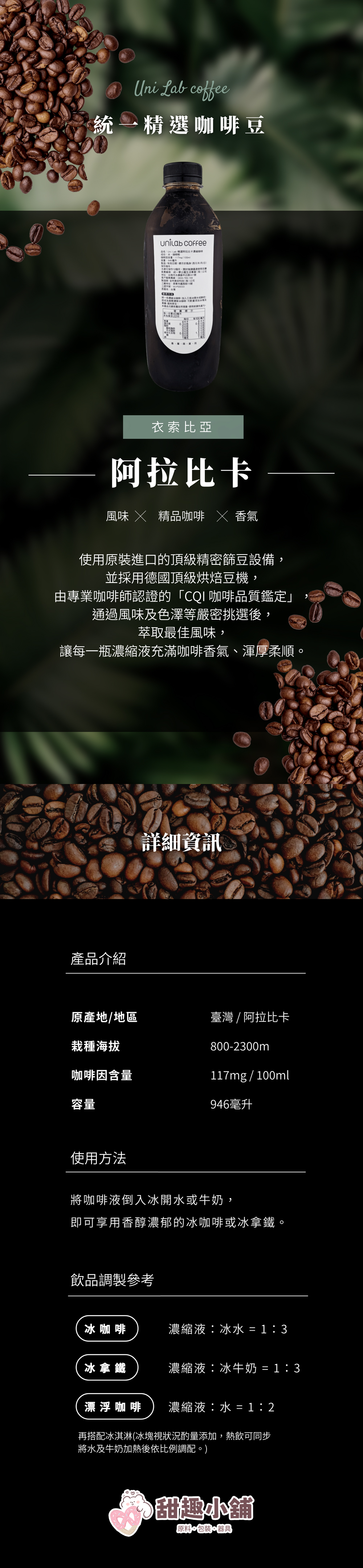 【統一】Uni Lab coffee 精選濃縮咖啡液 964ml