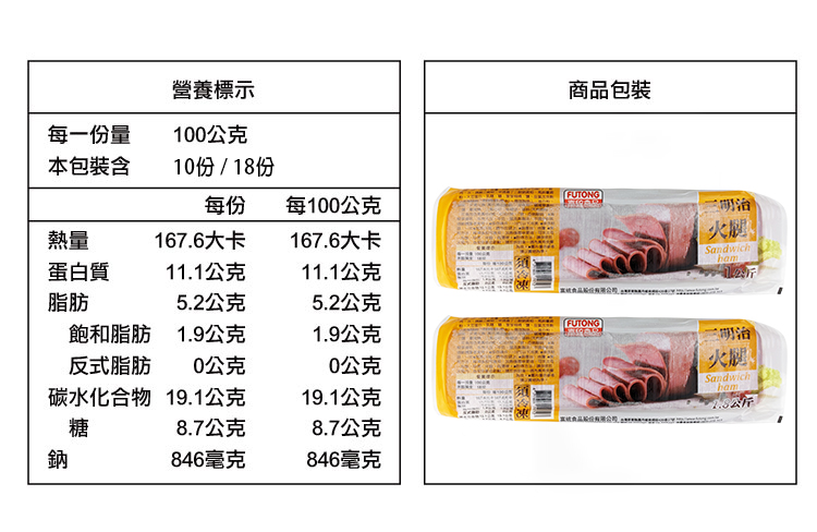 【富統】三明治火腿 [小/大] 1kg 1.8kg