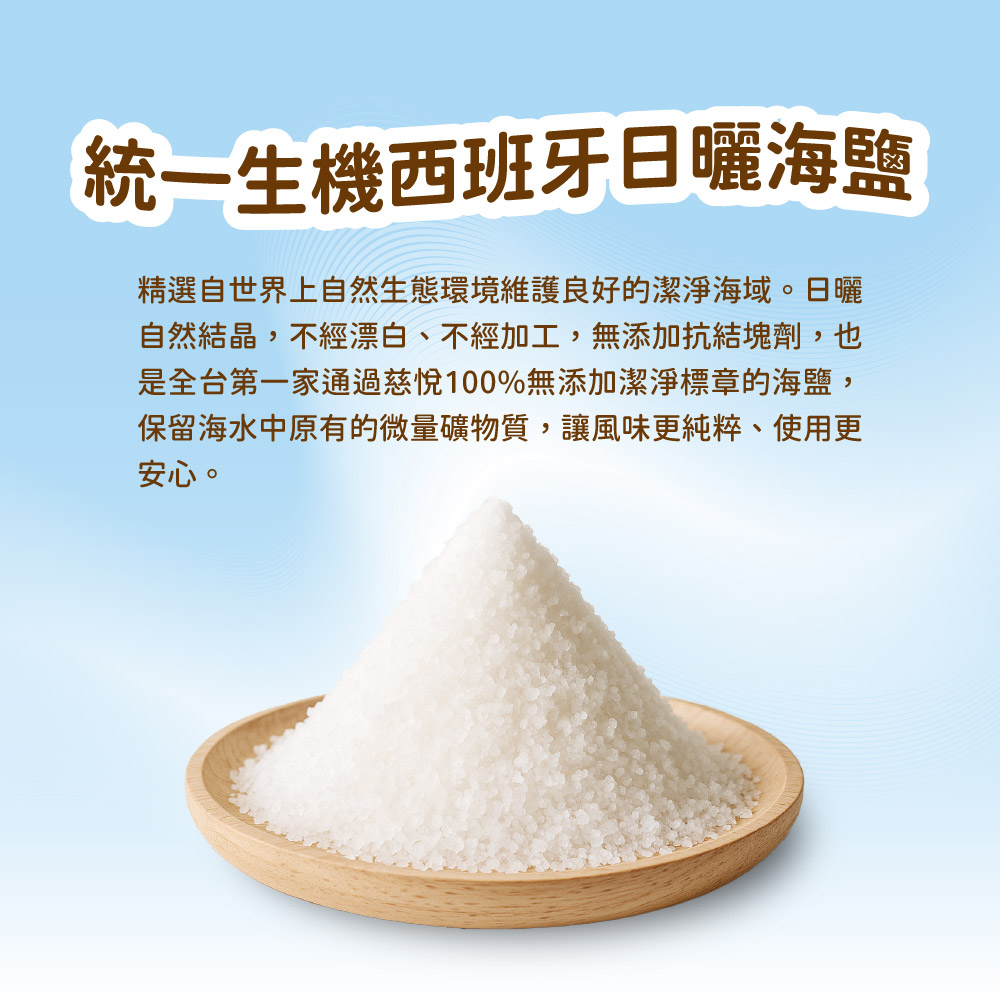 西班牙日曬海鹽,恰到好處提升風味;