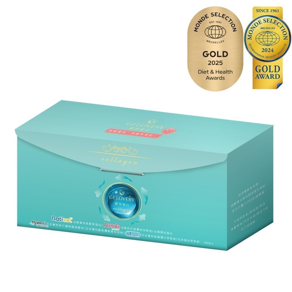 榮獲2024世界品質金獎 採用優質魚來源,經酵素水解為膠原蛋白胜肽,低分子量(<2000)道爾頓, 可利用率高,高純度,無色,無腥臭味,完全水溶,吸收力佳,且口感細緻。 一天一包,以下為一包的劑量: Naticol法國專利魚膠原蛋白 5000 mg Hyabest日本專利流行鏈球菌發酵物 40 mg Nexira法國西印度櫻桃萃取物 250 mg SCP Complex-LS日本專利鮭魚鼻軟骨萃取物 5 mg Oryza日本專利草莓種子萃取物 20 mg 日本稻米萃取物 5 mg COLLACTIVE法國彈力蛋白 100 mg