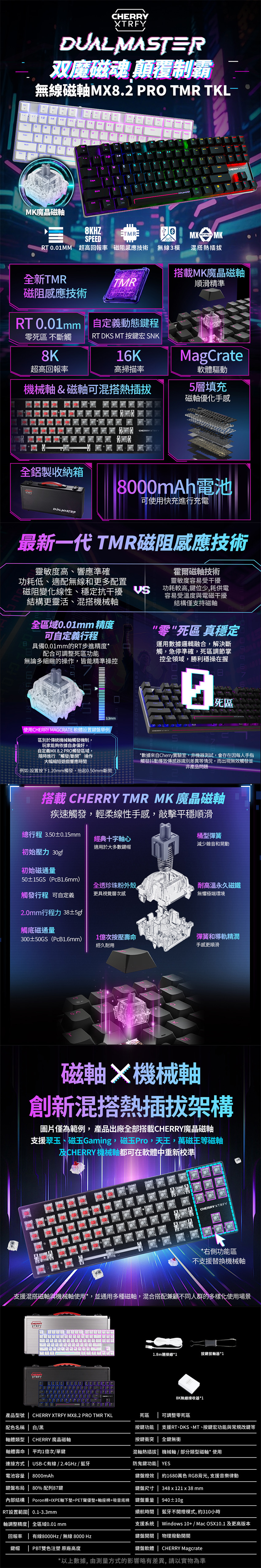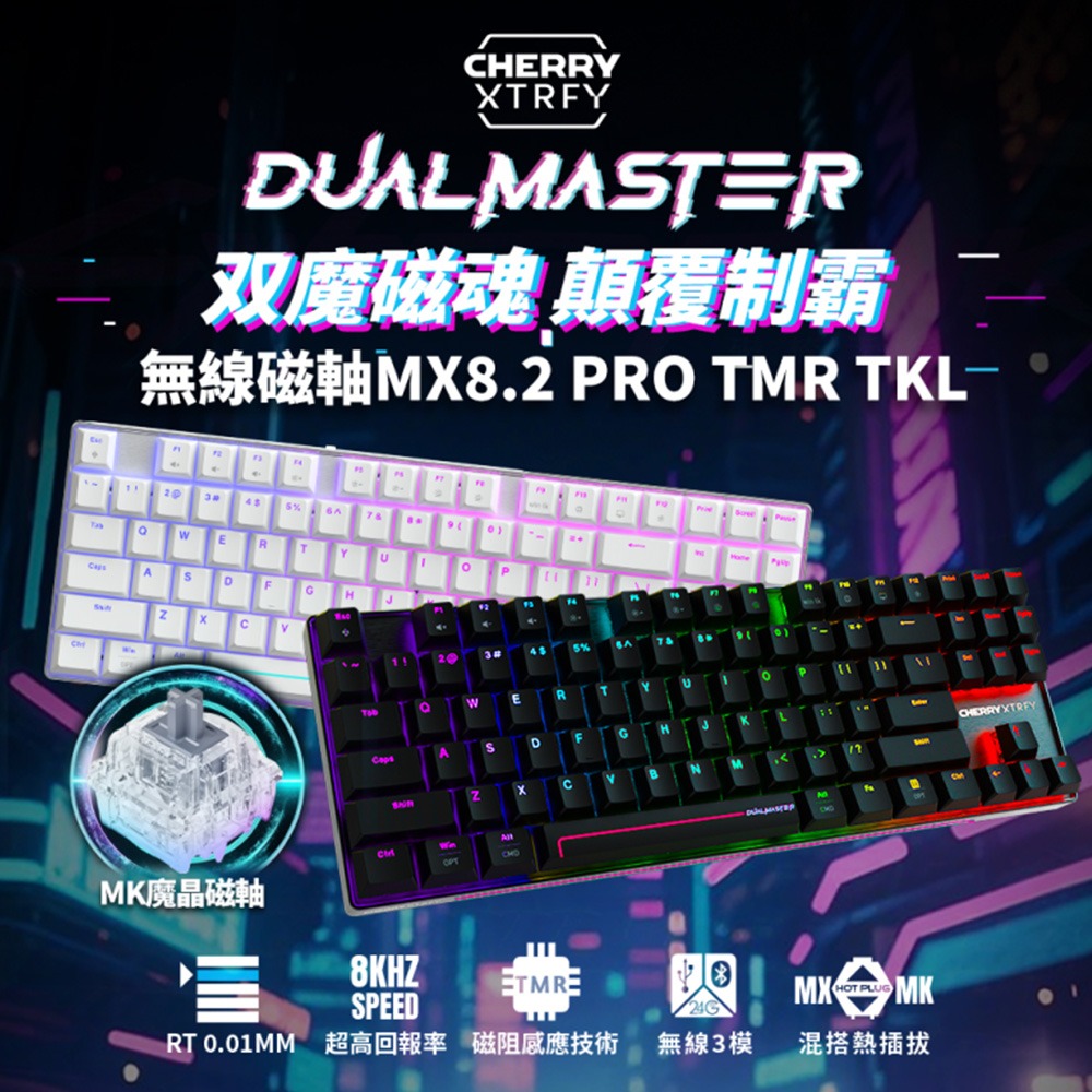德國工藝 Cherry 無線三模 MX8.2 PRO TMR TKL 白-魔晶磁軸