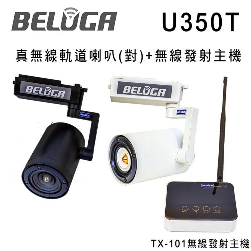 BELUGA 白鯨牌 U350T 真無線軌道音響喇叭標配組(含無線發射主機TX-101+一對無線軌道喇叭)