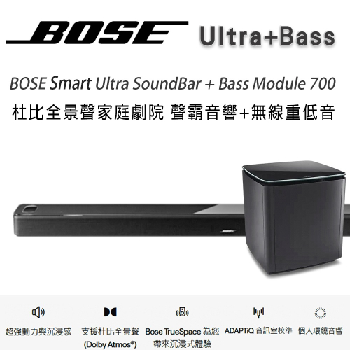 美國 BOSE Smart Ultra Soundbar杜比全景聲家庭劇院+Bass Module 700無線重低音