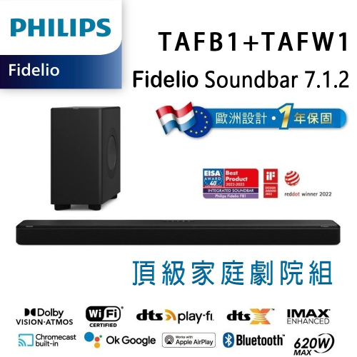 飛利浦 PHILIPS TAFB1+TAFW1 Fidelio Soundbar 7.1.2聲道 頂級家庭劇院組
