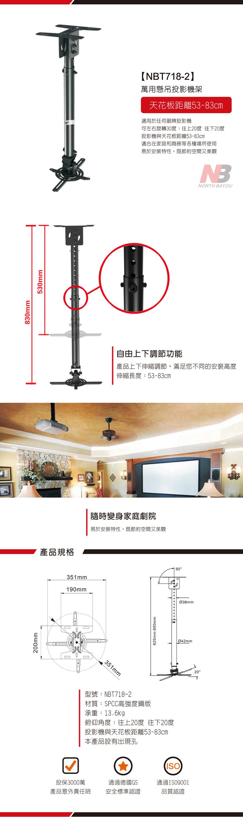 NB T-718-2萬用型投影機吊架(倒吊式-長)天吊/懸吊式
