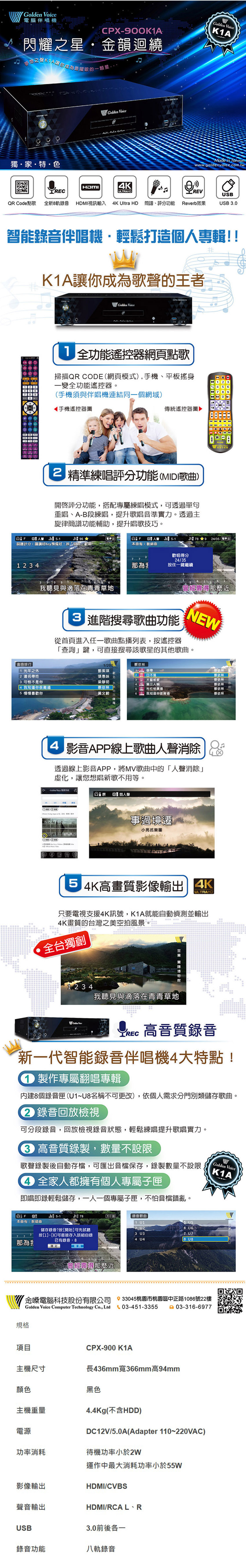 Golden Voice 金嗓 CPX-900 K1A家庭劇院型伴唱機 4TB 家用KTV