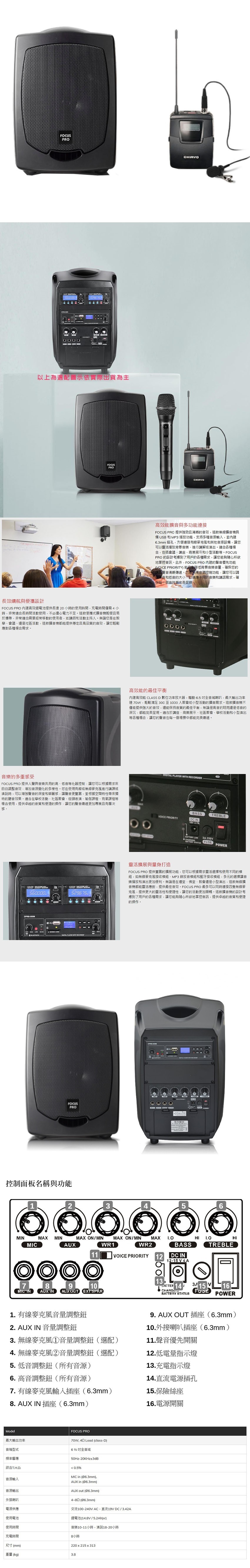 CHIAYO 嘉友 FOCUS PRO 手提式無線UHF雙頻擴音機
