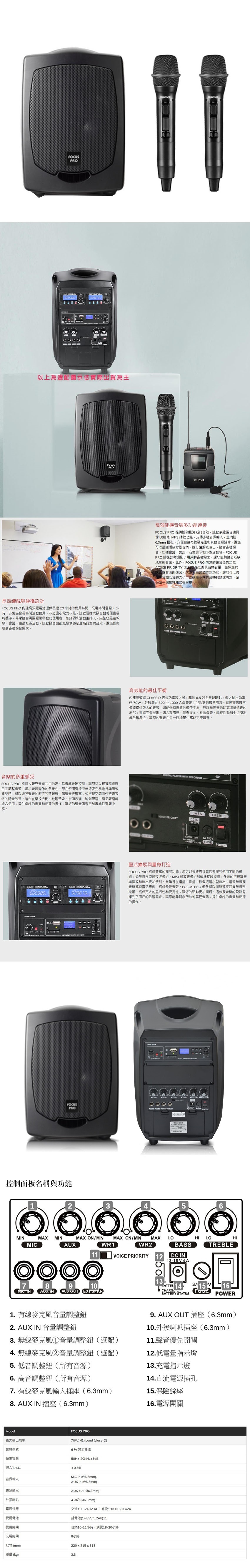 CHIAYO 嘉友 FOCUS PRO 手提式無線UHF雙頻擴音機 含藍芽/USB/背包/鋰電池/2支手握麥克風