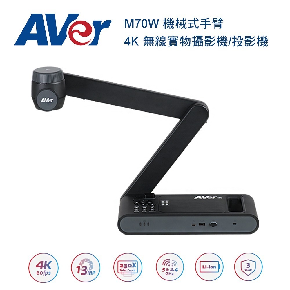 AVer 圓展 M70W 機械式手臂 4K 無線實物攝影機/投影機