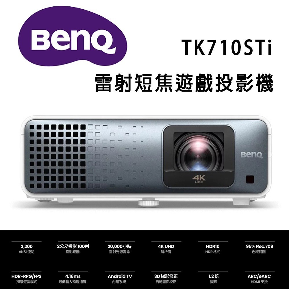 BenQ TK710STi 4K HDR 雷射短焦遊戲投影機 / 低延遲高亮三坪機(3200流明)