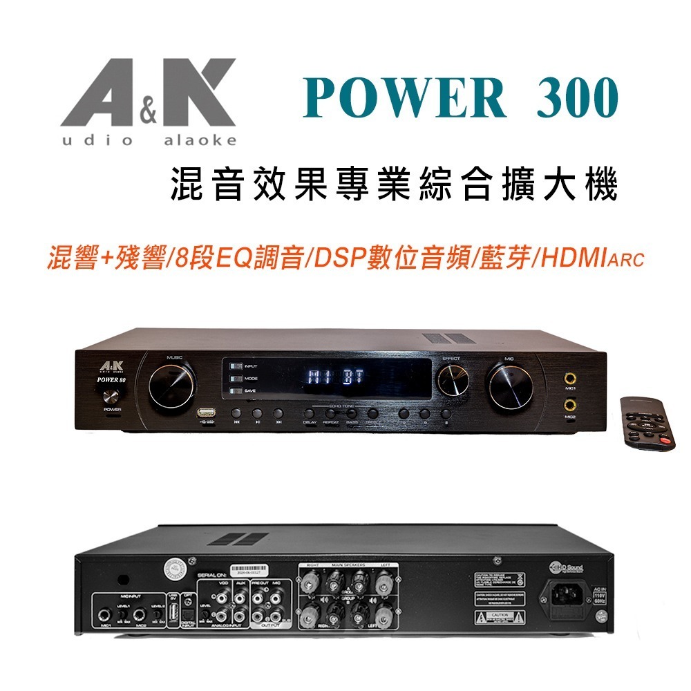 A&K POWER 300 混音效果專業綜合擴大機 混響+殘響/8段EQ調音/DSP數位音頻/藍芽/HDMI ARC