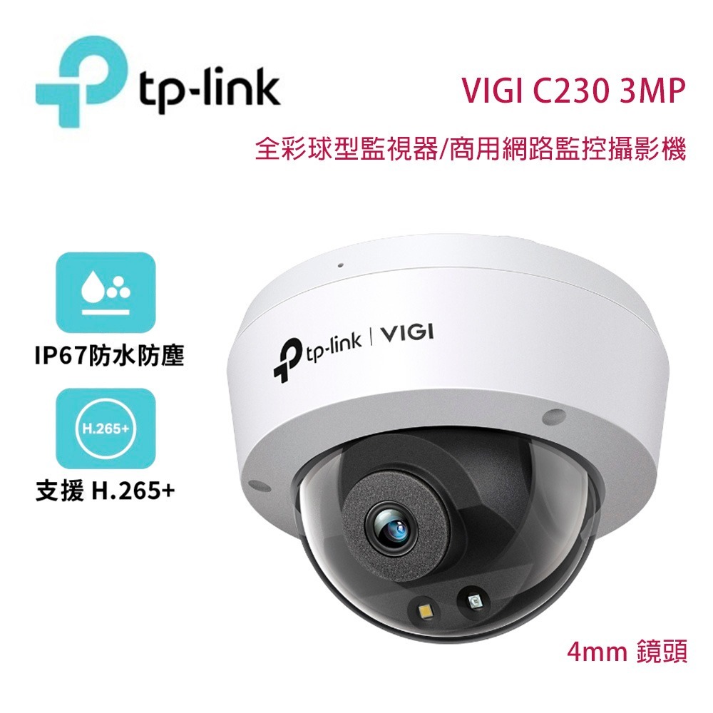 TP-Link VIGI C230 3MP 全彩球型監視器/商用網路監控攝影機/4mm鏡頭