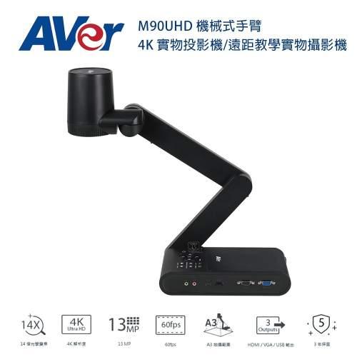 AVer M90UHD 4K機械式手臂實物投影機/遠距教學實物攝影機