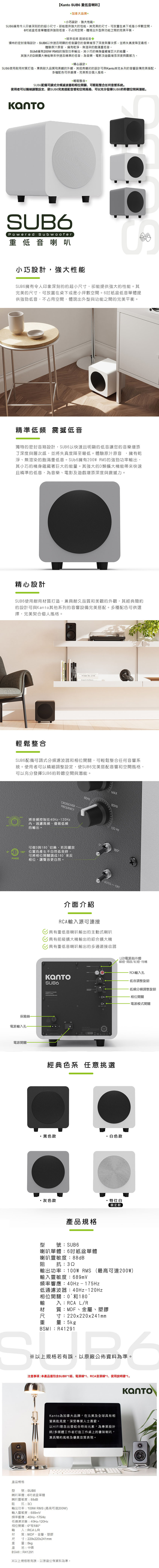 加拿大品牌 Kanto SUB6 重低音喇叭6吋紙盆低音單體/200W低音威力/RCA輸入 公司貨