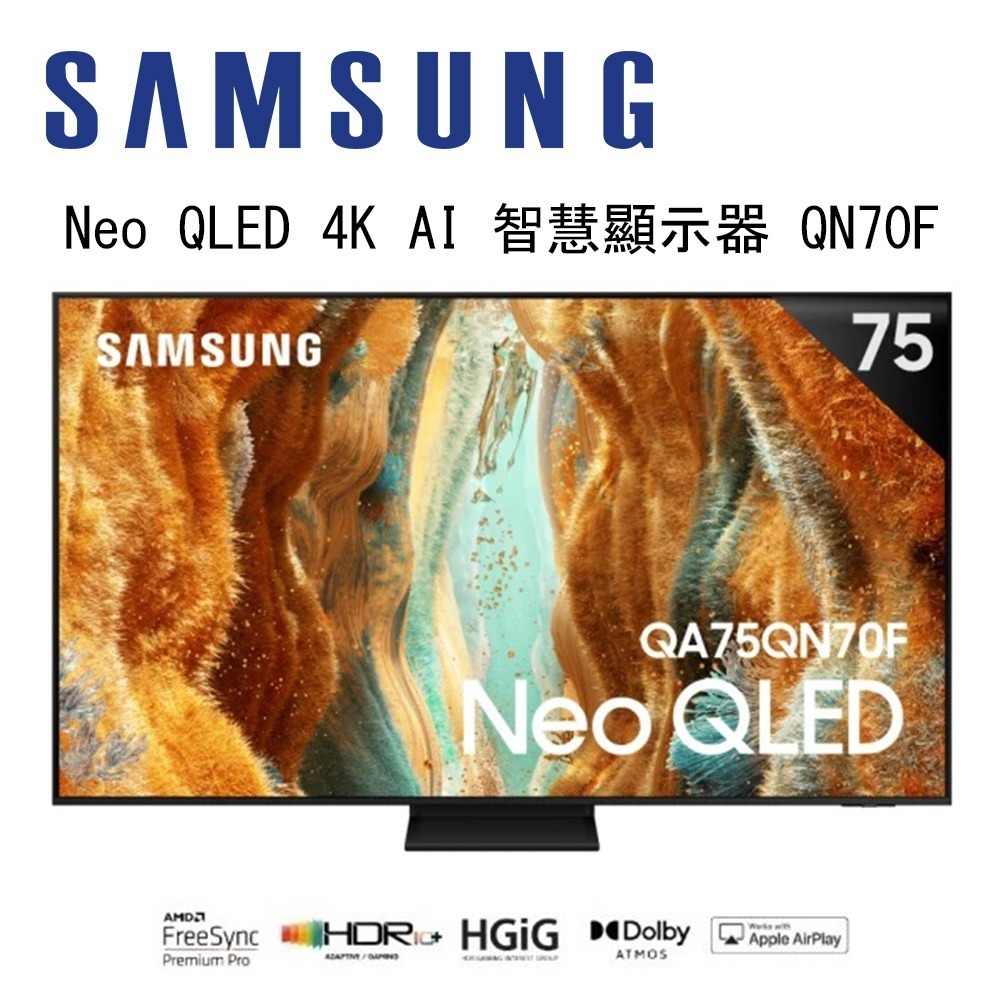 SAMSUNG 三星 Neo QLED QN70F 4K QA75QN70FAXXZW 75吋 Vision AI