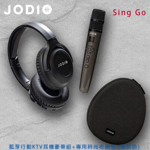 JODIO Sing Go 藍芽行動KTV耳機豪華組 (酷黑)+專用時尚收納包 (灰黑)