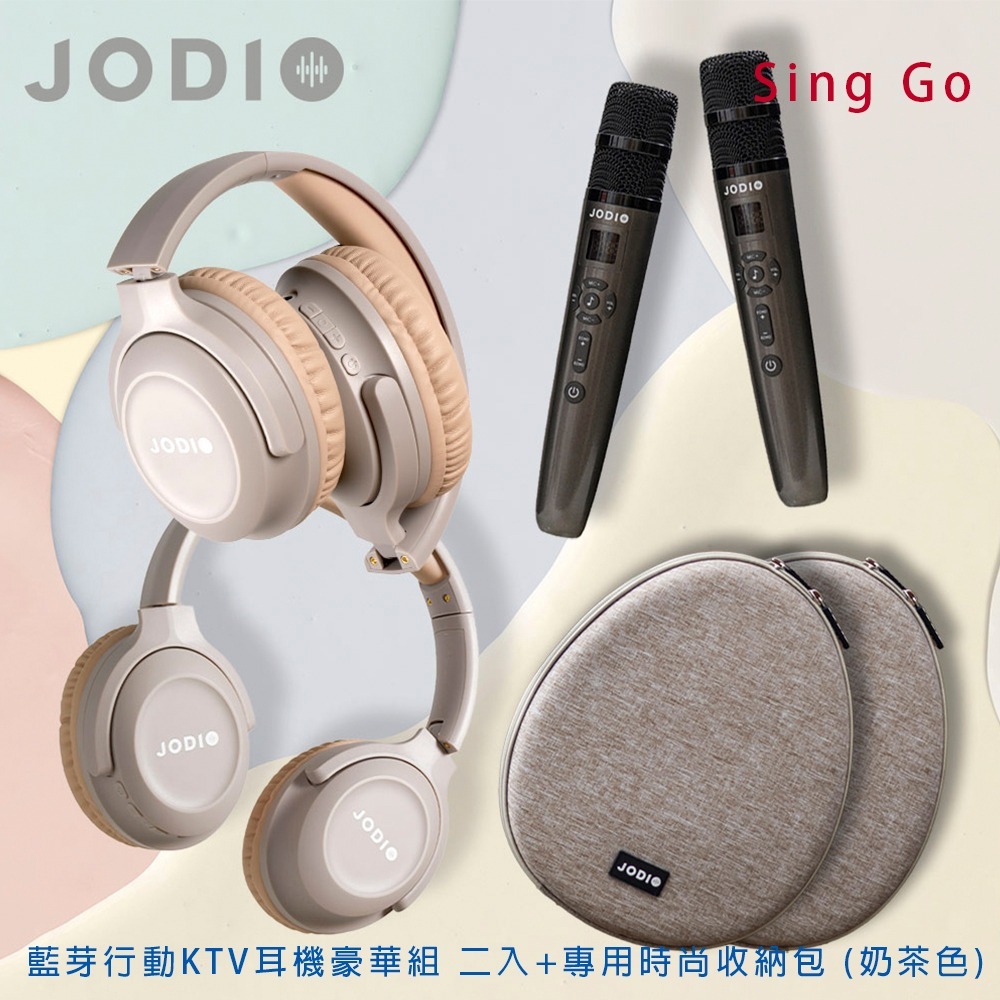 藍芽行動KTV耳機豪華組 二入 (奶茶色)+專用時尚收納包 (奶茶色)