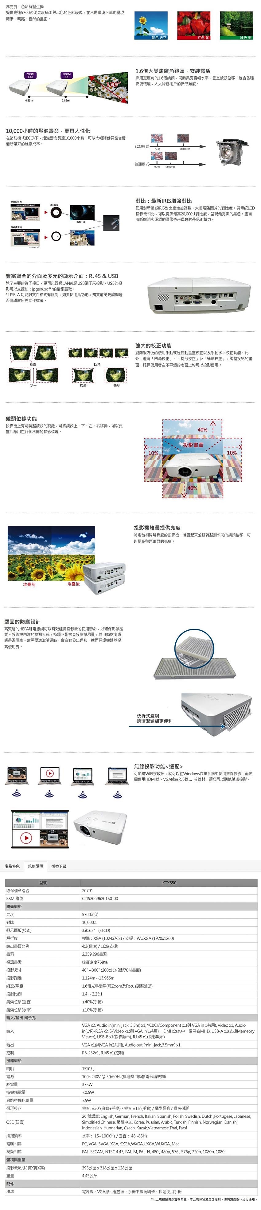 BOXLIGHT KTX550 長焦商務教育型投影機 5,700流明