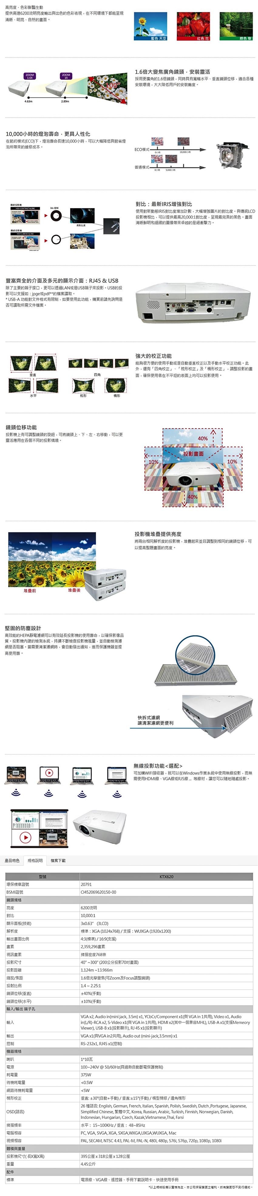 BOXLIGHT KTX620 長焦商務教育型投影機 6,200流明