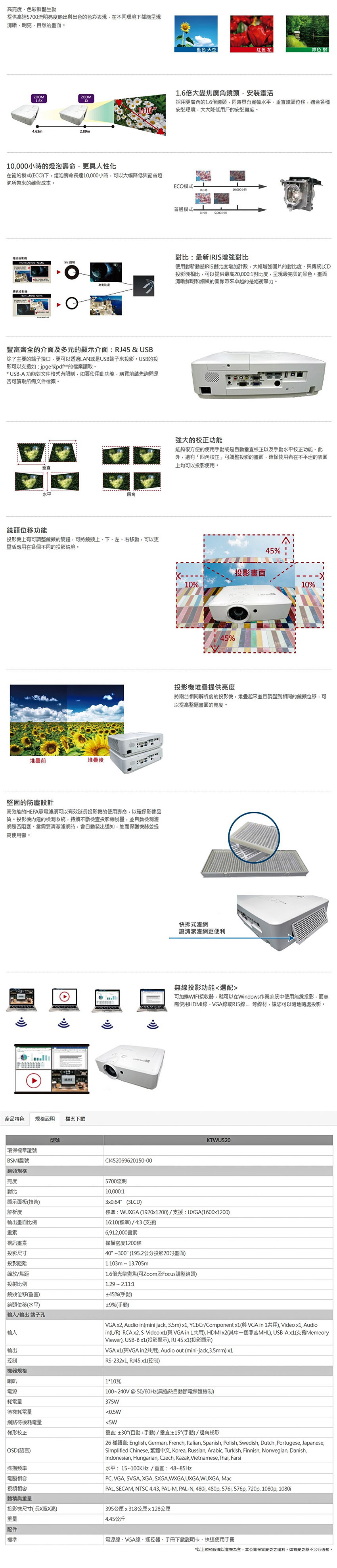 BOXLIGHT KTWU520 長焦商務教育型投影機 5,700流明