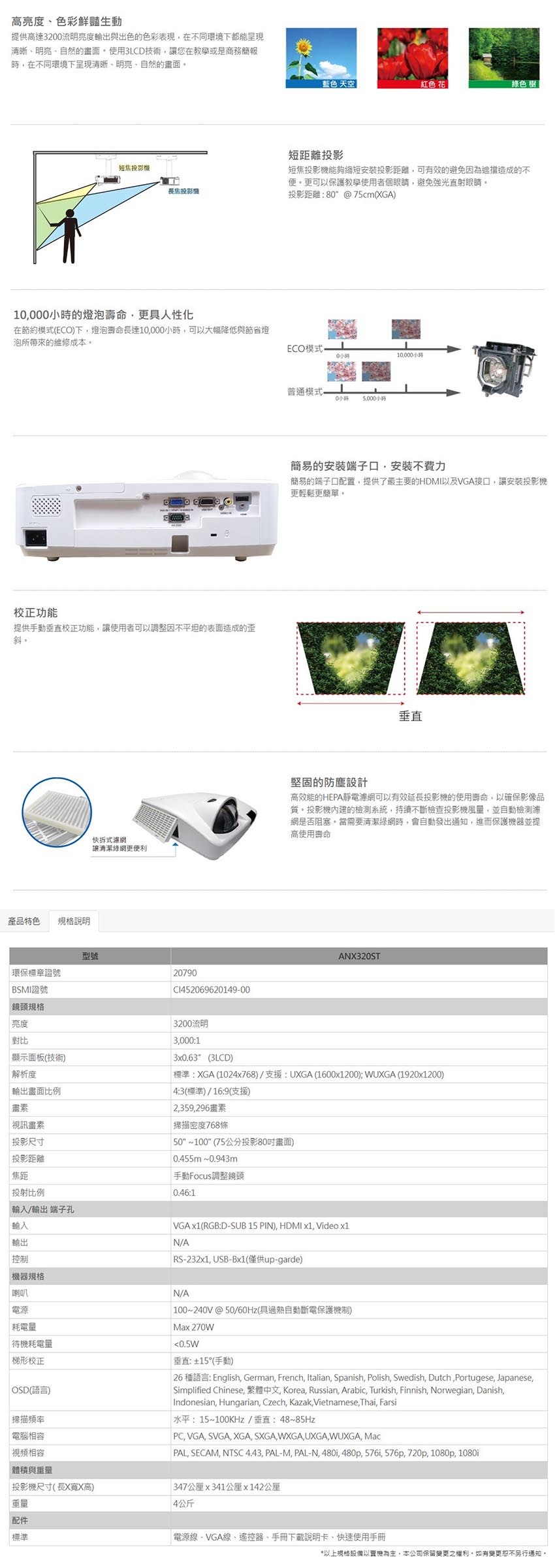 BOXLIGHT ANX320ST XGA短焦投影機 3,200流明