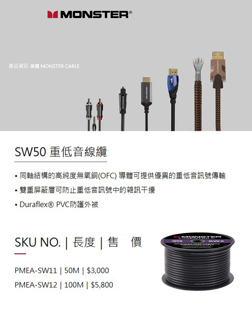 .同軸結構的高純度無氧銅(OFC) 導體可提供優異的重低音訊號傳輸