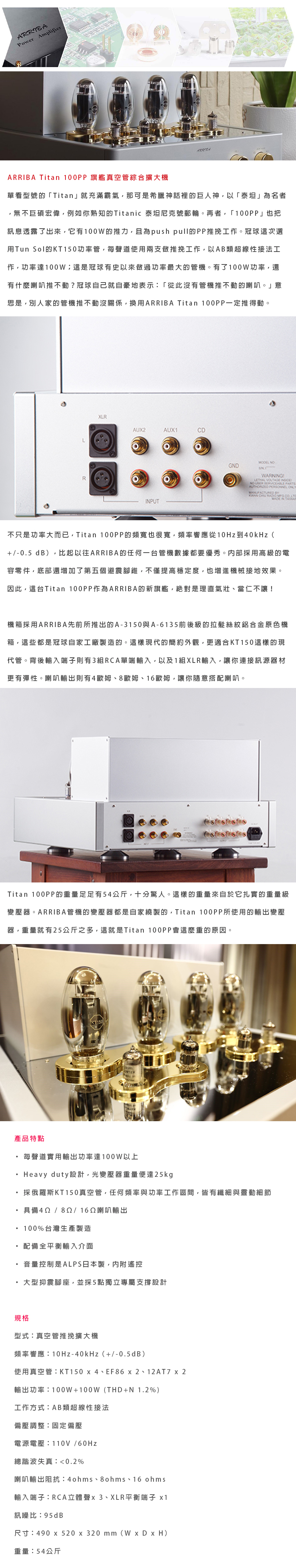冠球 ARRIBA AUDIO TITAN 100PP 旗艦真空管綜合擴大機