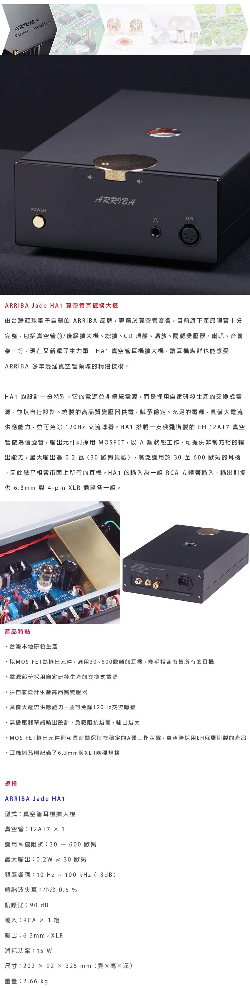 冠球 ARRIBA AUDIO JADE HA1 真空管耳機擴大機