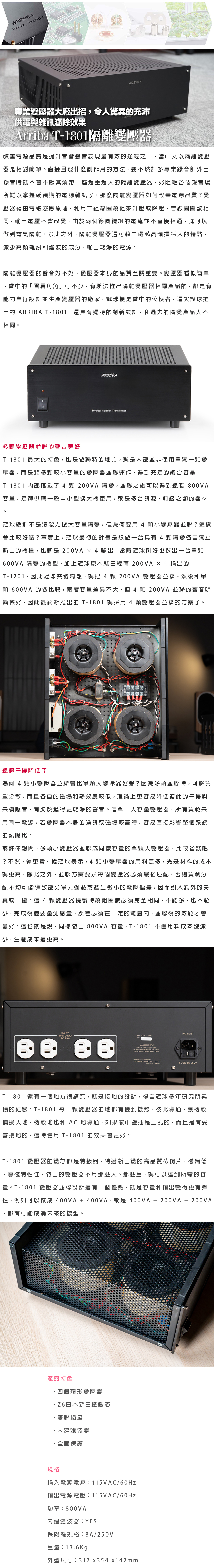 冠球 ARRIBA AUDIO T-1801 隔離變壓器