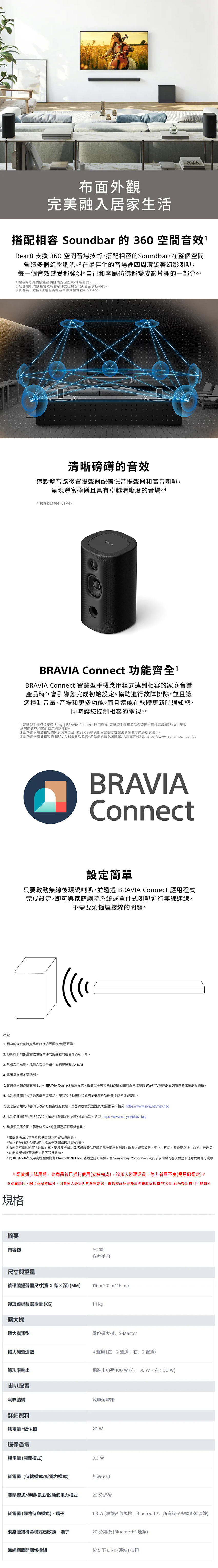 索尼 SONY BRAVIA Theatre Rear 8 (SA-RS8) 無線後環繞揚聲器 公司貨