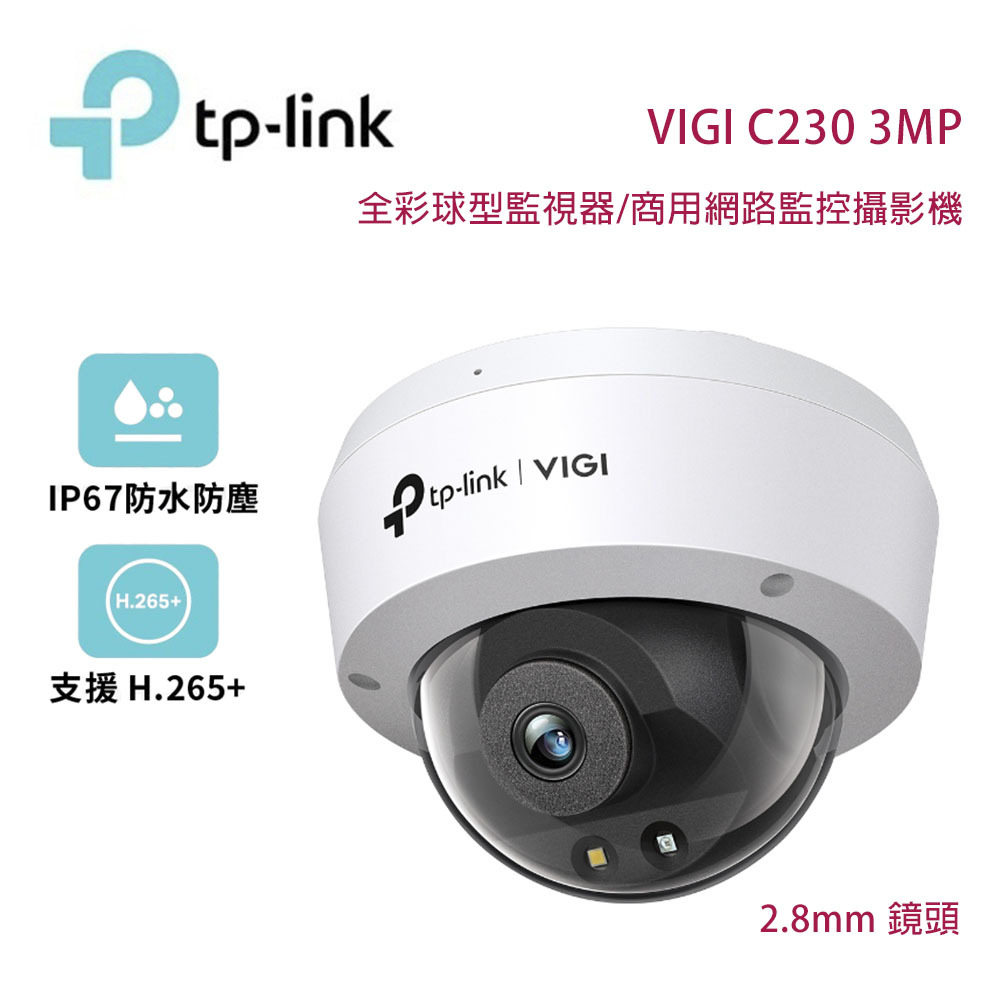 TP-Link VIGI C230 3MP 全彩球型監視器/商用網路監控攝影機/2.8mm鏡頭