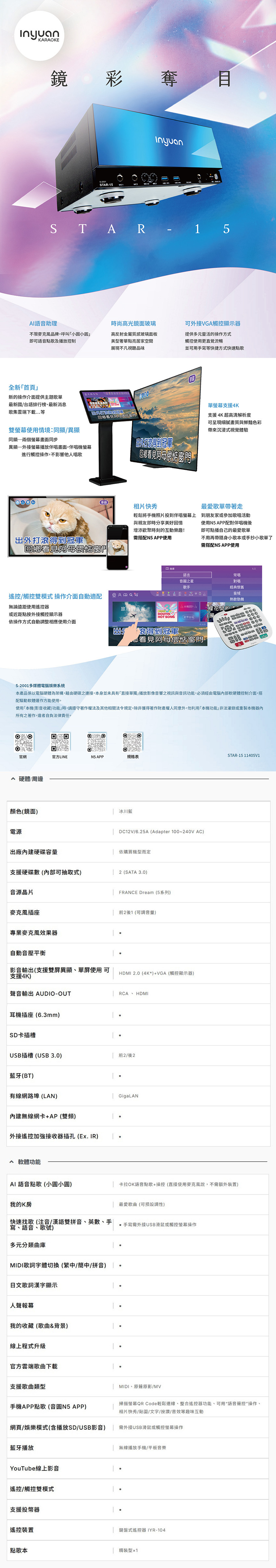 Inyuan 音圓 S-2001 STAR-15 鏡面美型卡拉OK點歌機 4TB 家用KTV