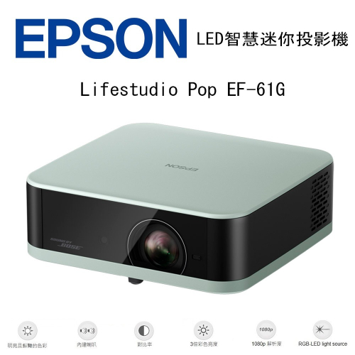 EPSON Lifestudio Pop EF-61G LED智慧迷你投影機 雷鬼綠
