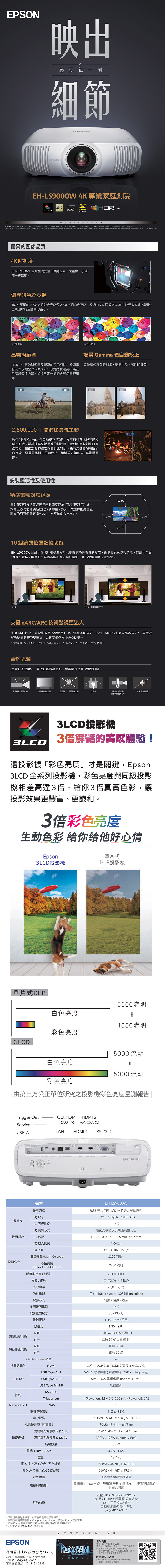 EPSON EH-LS9000W 4K雷射3LCD專業家庭劇院投影機
