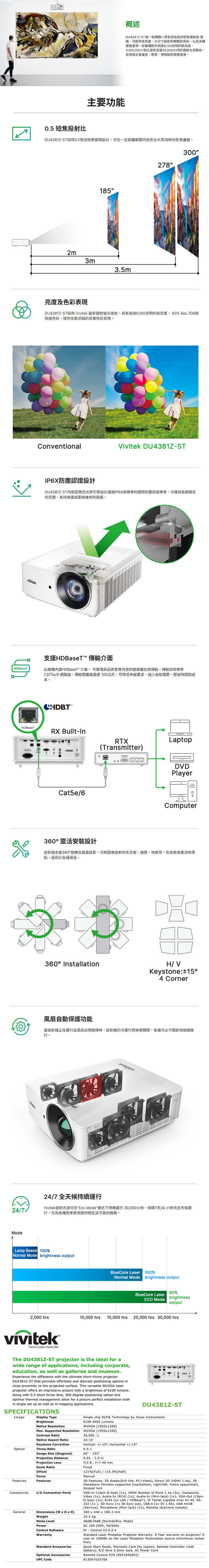 Vivitek 麗訊 DU4381Z-ST 工程用中型場地雷射投影機