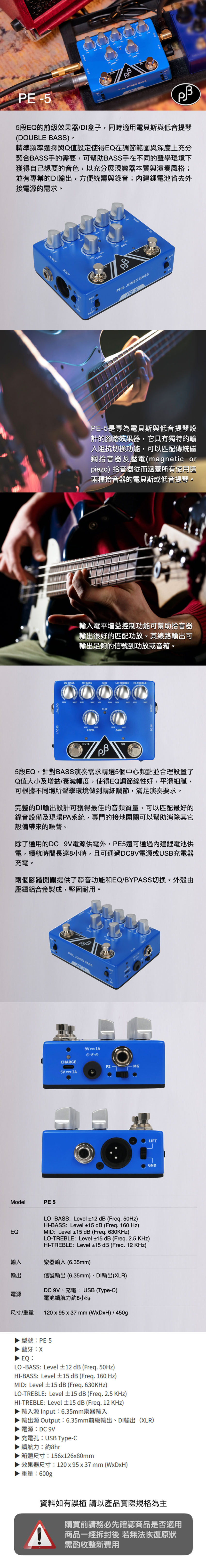 PJB PE-5 前級效果器/電貝斯/低音提琴/效果器/內建電池