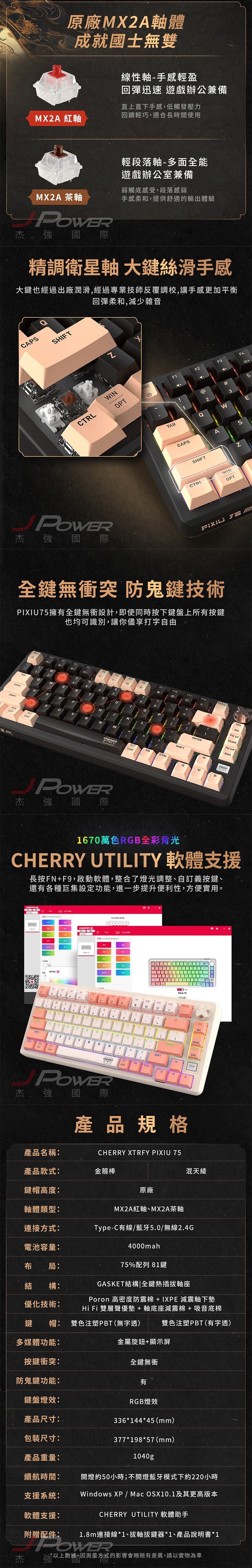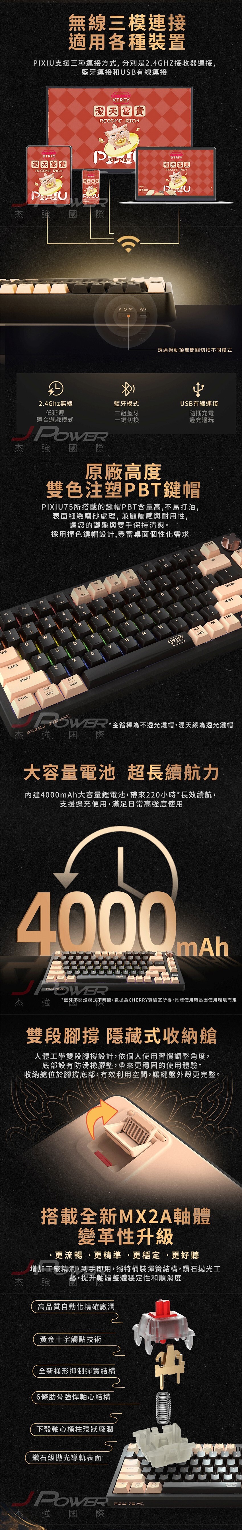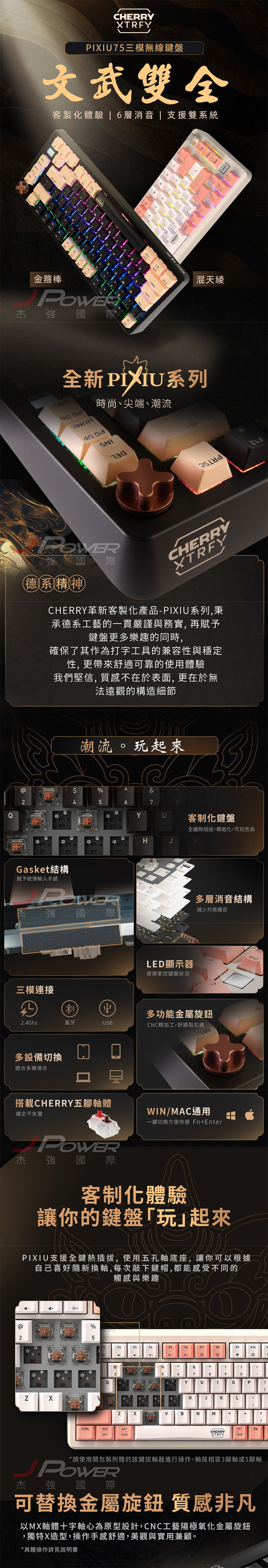 德國工藝 Cherry 無線三模 PIXIU75 RGB MX2A 混天綾紅軸