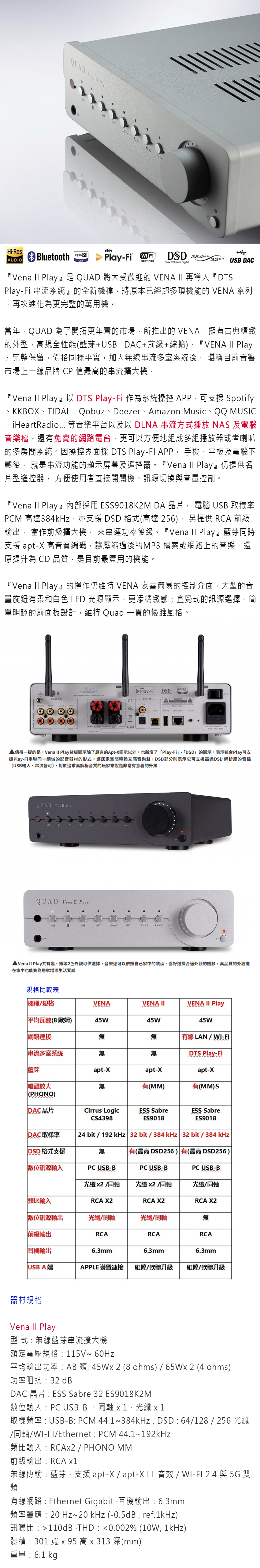 英國 QUAD Vena II PLAY 串流 DAC 綜合擴大機