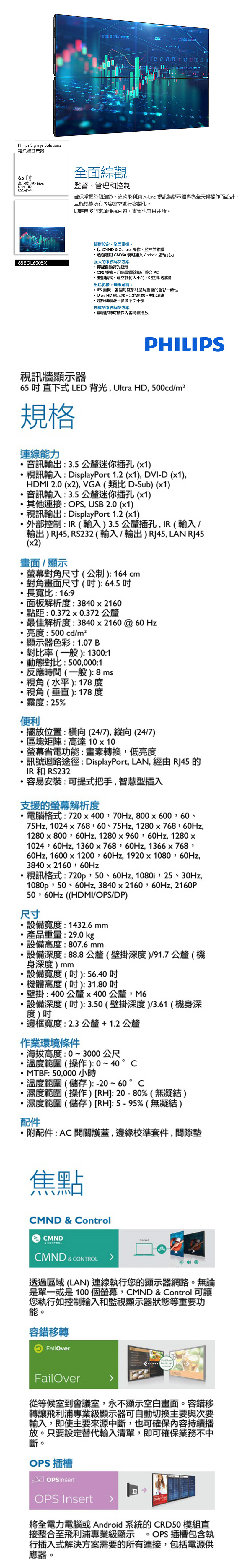 PHILIPS 飛利浦 65BDL6005X/96 65型 視訊牆顯示器 保固3年