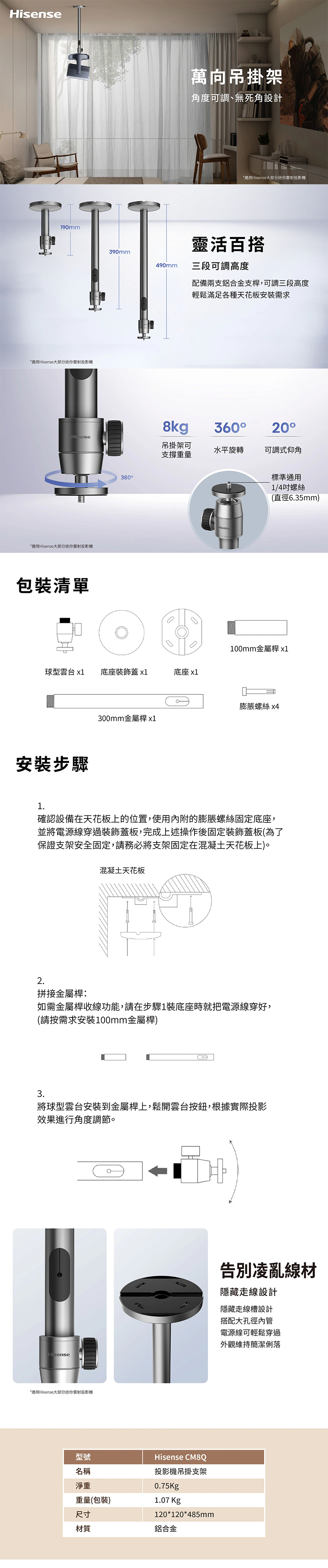 海信 Hisense CM8Q原廠天花板吊掛架(適用C2 Ultra、M2 Pro)