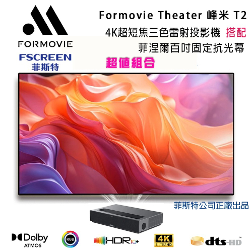 Formovie Theater 峰米 T2 三色RGB+4K超短焦雷色投影機(搭配菲涅爾120吋固定抗光幕含安裝)