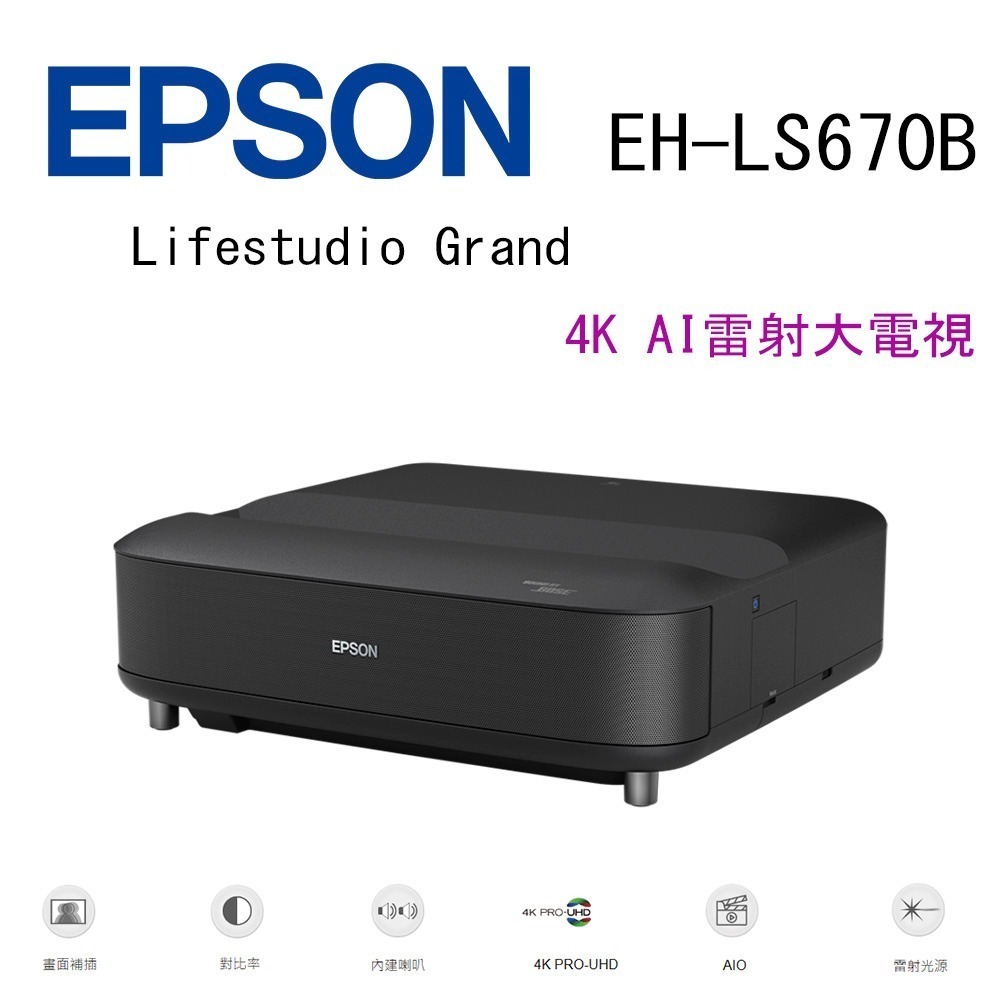 EPSON Lifestudio Grand EH-LS670B 4K AI雷射大電視